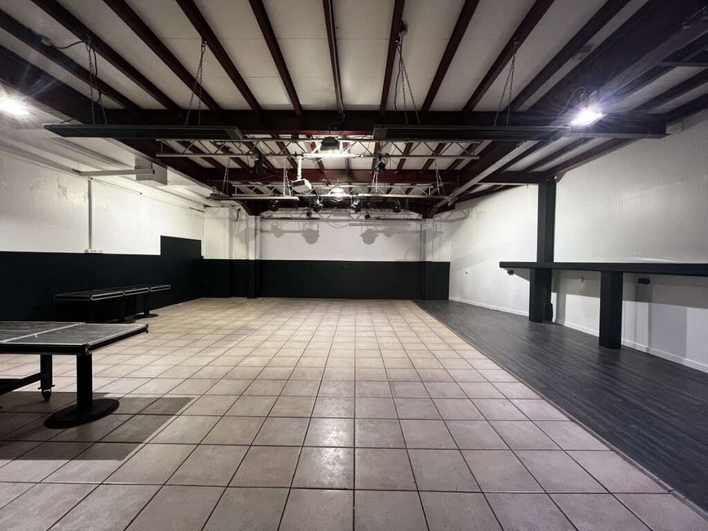 La grande salle (100 m²) est systématiquement incluse dans la privatisation totale et peut être incluse dans la privatisation partielle (en remplacement de la piste de danse ci-dessous). Elle est parfaite pour les cocktails, les réceptions et les événements d'entreprise avec son vidéo-projecteur et son écran de projection.