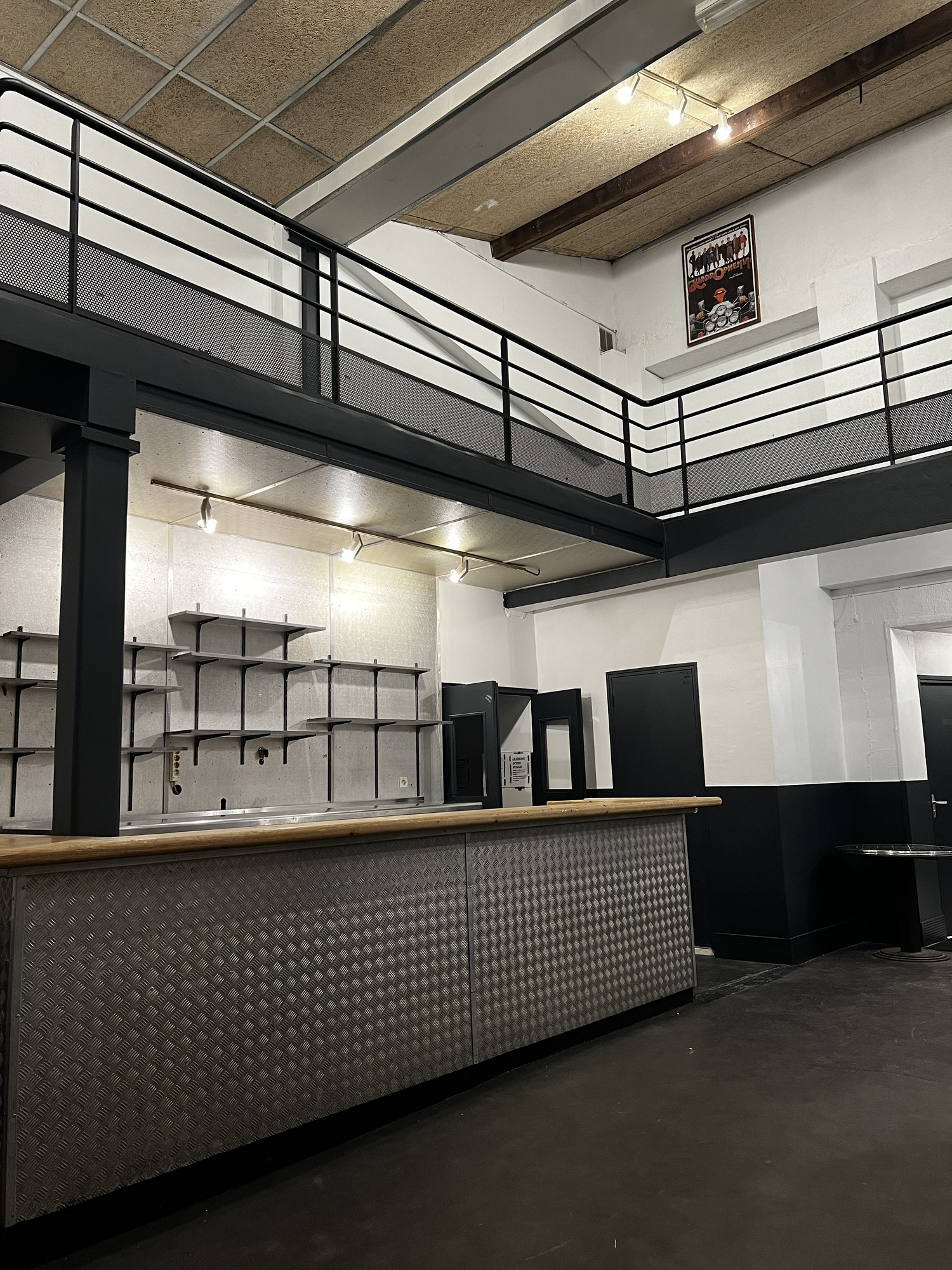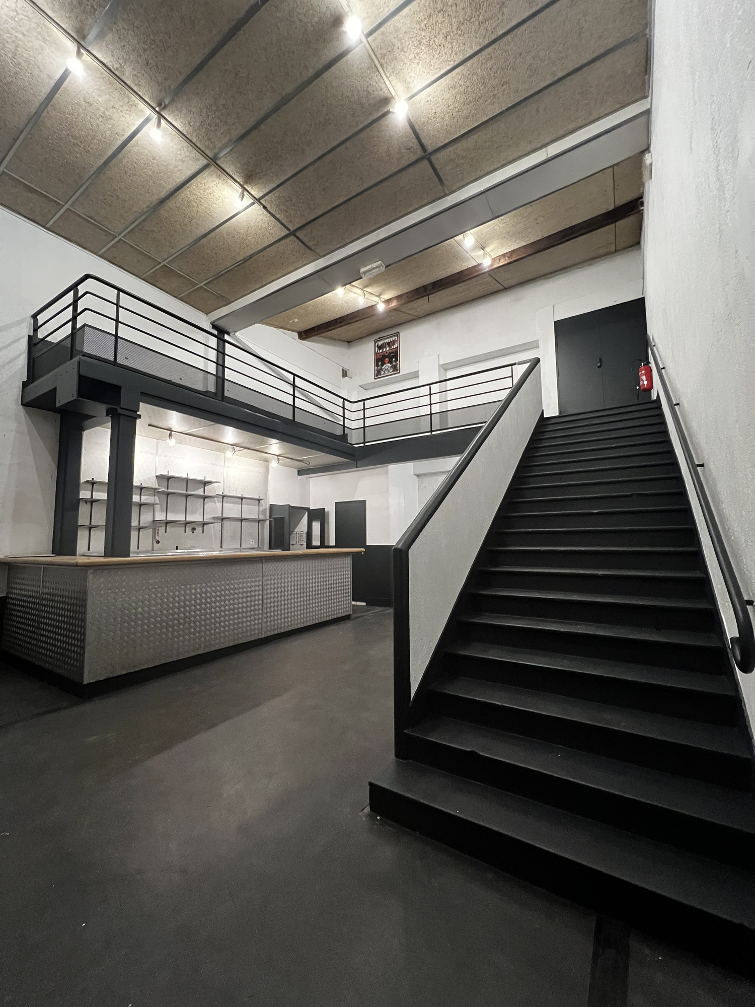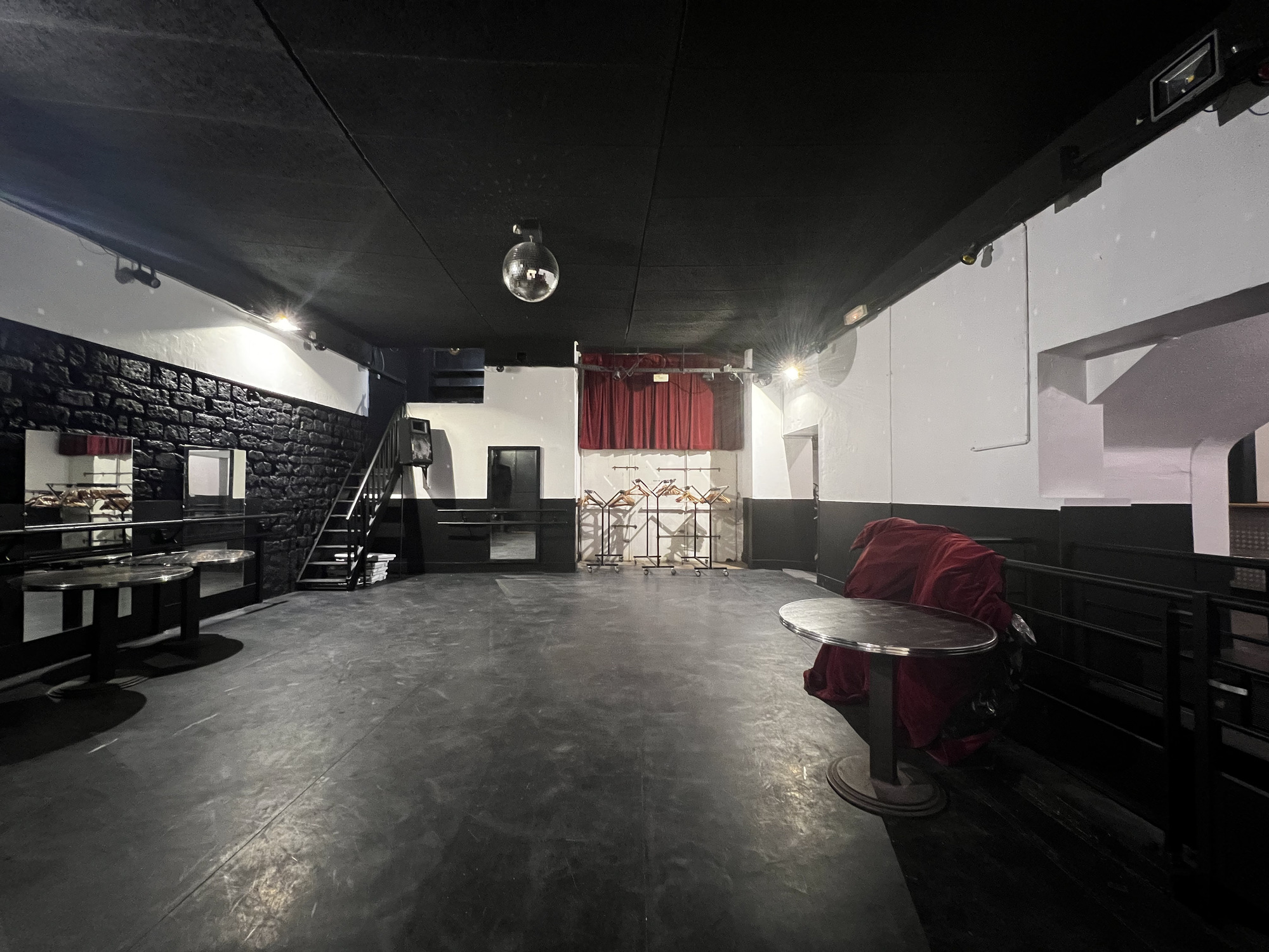 La grande salle (100 m²) est systématiquement incluse dans la privatisation totale et peut être incluse dans la privatisation partielle (en remplacement de la piste de danse ci-dessous). Elle est parfaite pour les cocktails, les réceptions et les événements d'entreprise avec son vidéo-projecteur et son écran de projection.